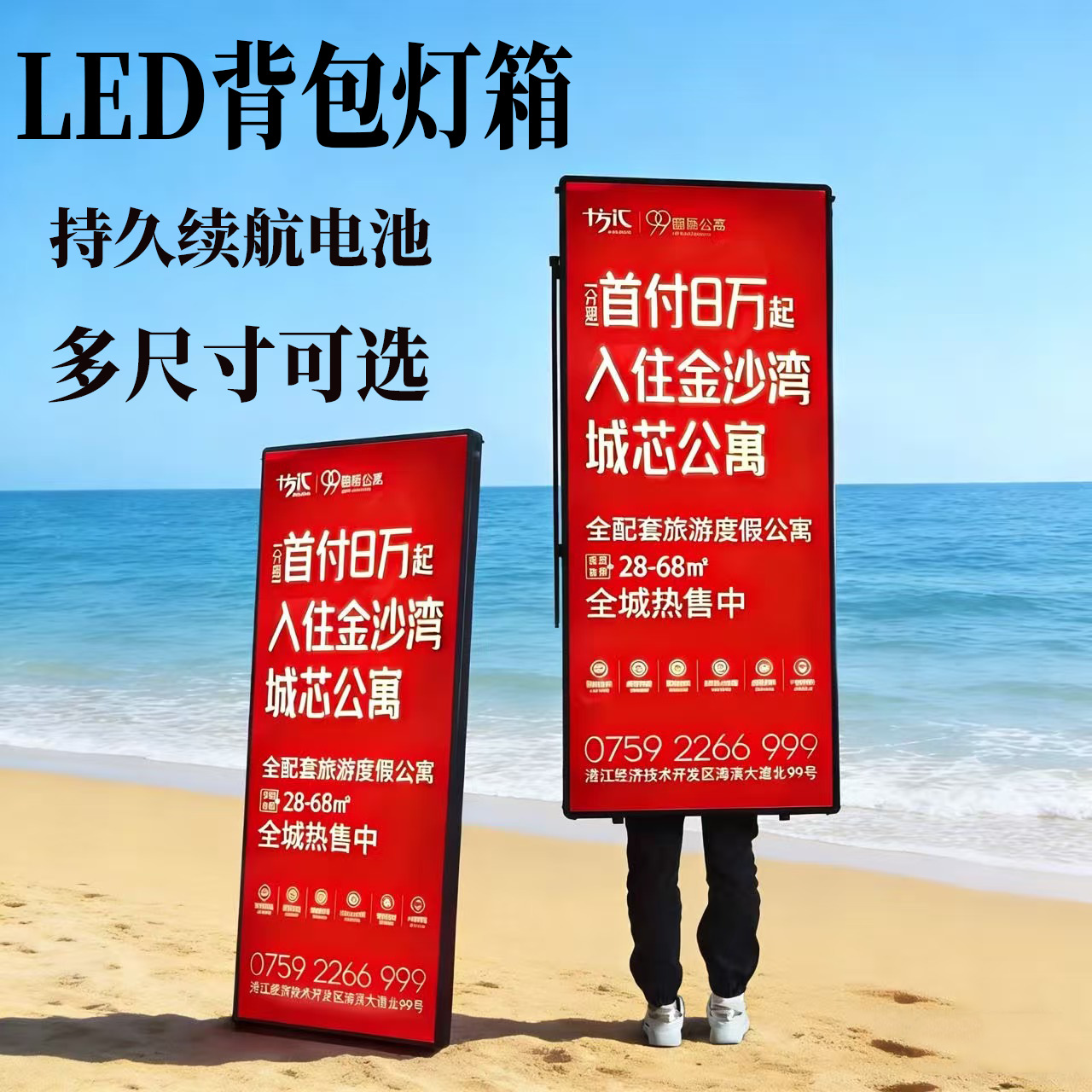 Iklan belakang ransel led kotak lampu pengisian portabel real estate tuoke luar ruangan malam Tuo Billboard