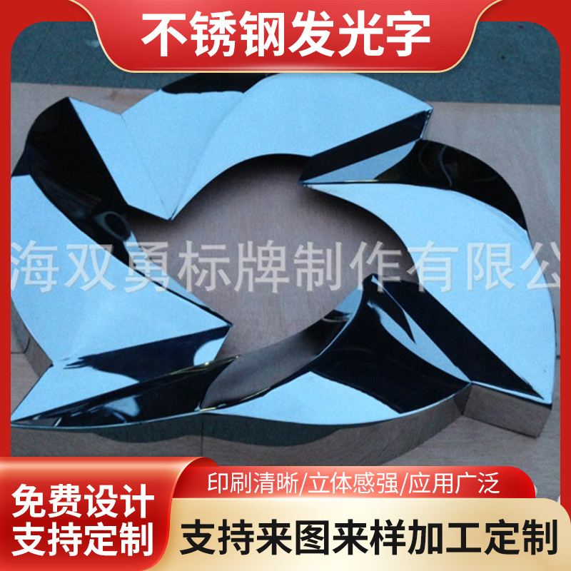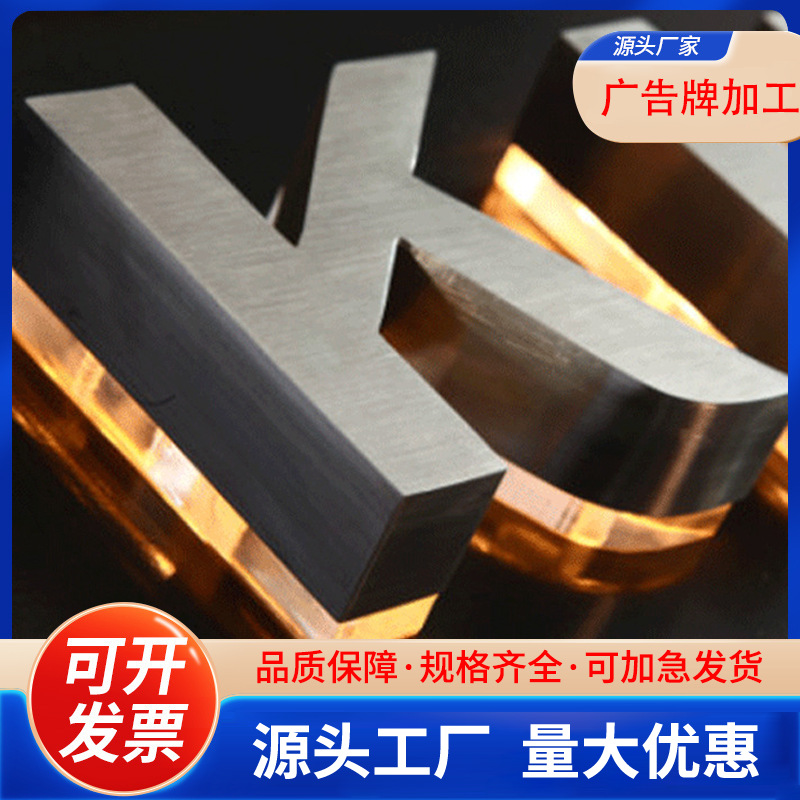 Papan reklame karakter bercahaya baja tahan karat 304 tiga dimensi papan nama metal pengolahan produksi logo toko bangunan