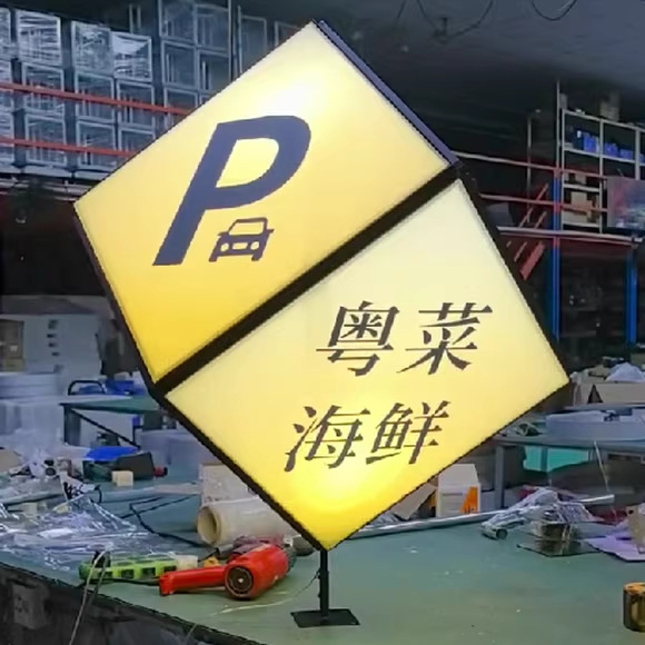 Kotak lampu berputar yang dipasang di samping, kotak lampu blister dua sisi, papan reklame bercahaya dua sisi tahan hujan untuk luar ruangan, papan nama bercahaya LED