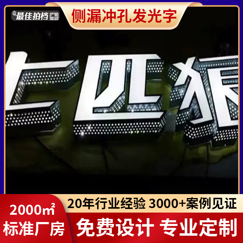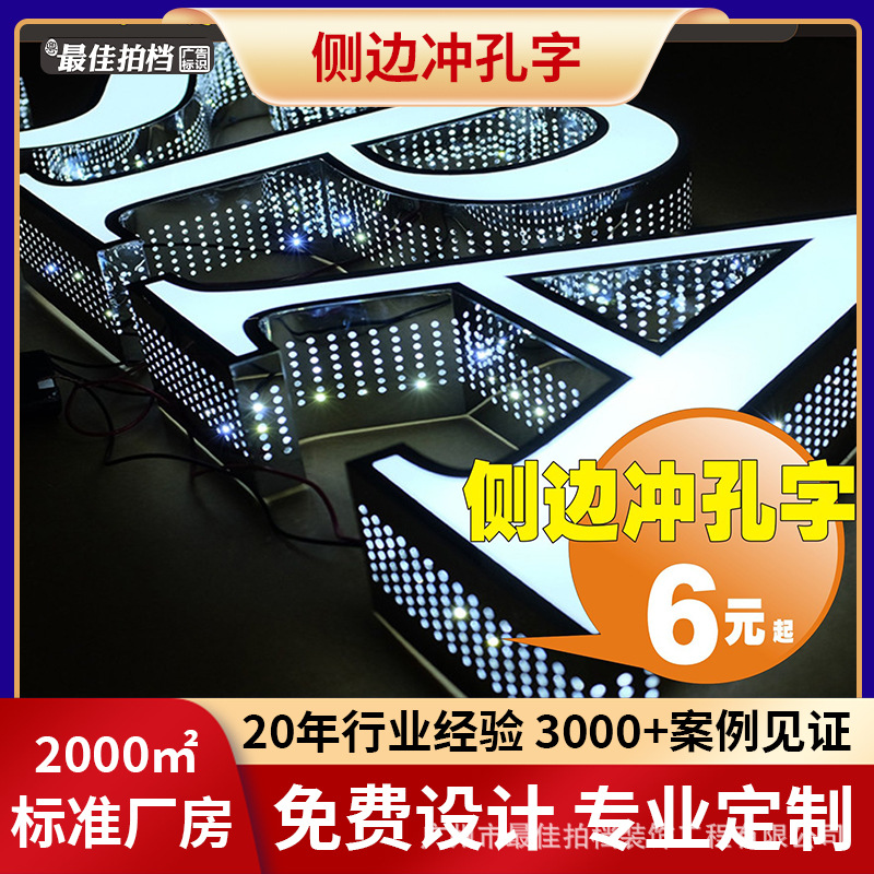Guangzhou baja tahan karat sisi mengebor karakter bercahaya mesh mesh sisi karakter bercahaya akrilik karakter datar tanda iklan