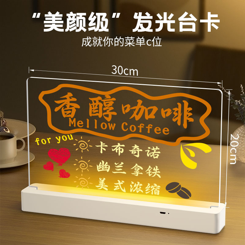 Papan iklan akrilik transparan magnetik Desktop dapat dihapus papan tulis kecil papan reklame menyala led papan neon