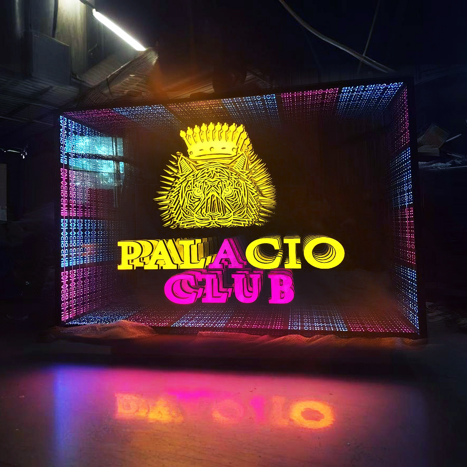 Cermin Melaled Astronot Aerospace LED Stainless Steel Tempered Glass Abyss Cermin Tak Terbatas Tanda Iklan Kepala Pintu