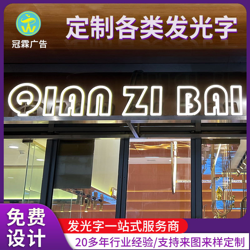 Papan reklame LED, papan reklame besi anti karat karakter bercahaya akrilik papan nama kreatif produksi depan meja logo bercahaya