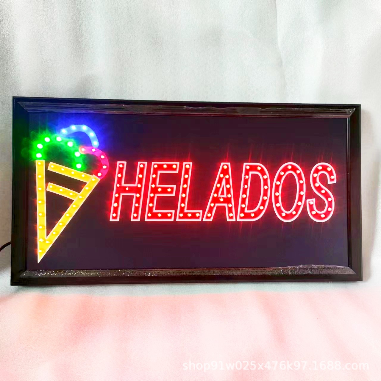 Papan reklame elektronik LED, kotak lampu bercahaya LED HELADOS kepala pintu berkedip