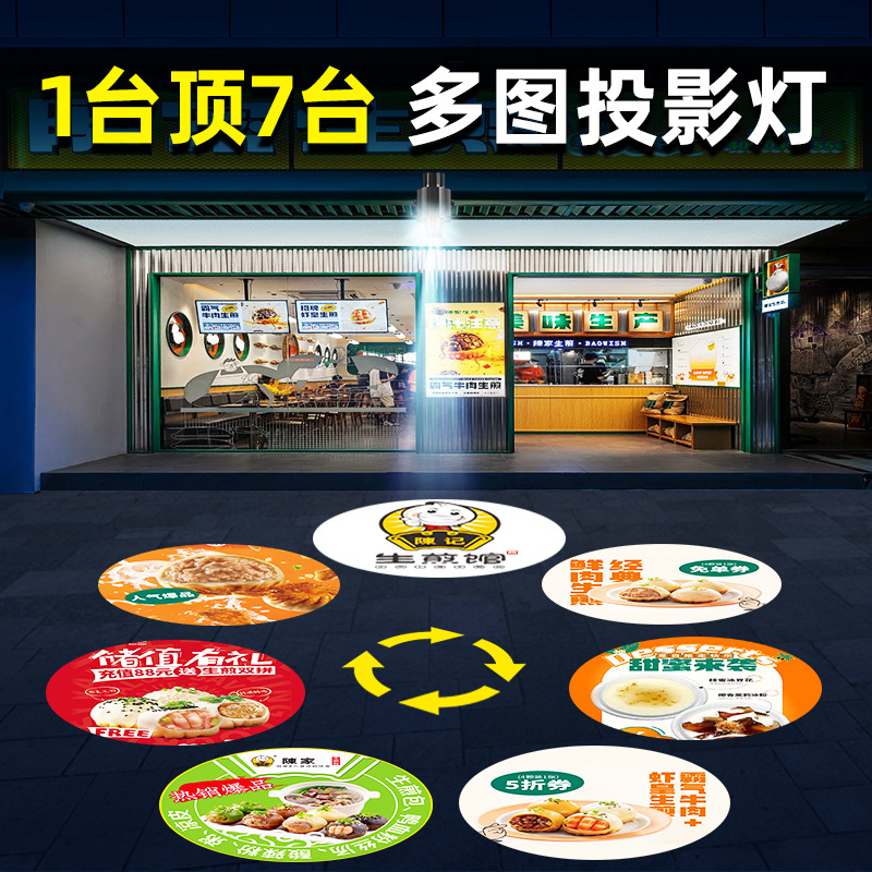 Lampu proyeksi pola logo putar multi-gambar lampu papan nama LED sorot luar ruangan konter pasar malam toko pakaian khusus