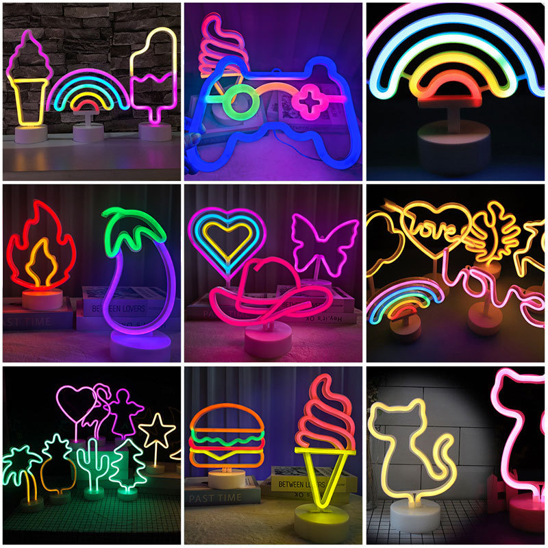 Lampu neon LED lintas batas lampu suasana pengakuan hati lampu bintang bentuk warna-warni lampu tanda bar lampu dekoratif
