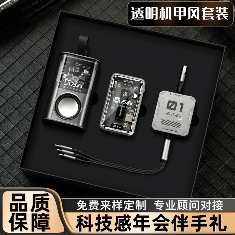Set Hadiah Teknologi Transparan Harta Karun Pengisi Daya Mech High-end Bisnis dengan Hadiah Khusus Logo Hadiah Acara Praktis