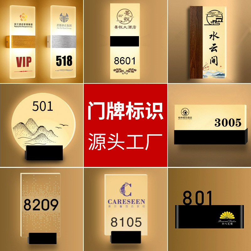 Pelat pintu Aksesori pemancar cahaya dasar papan nama lampu grosir akrilik indikator hotel tanda ruangan kotak nomor tetap pencetakan
