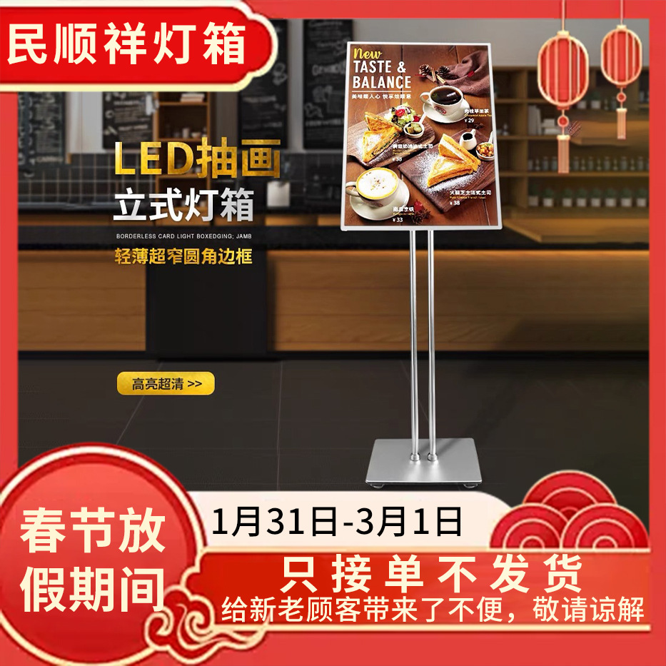 Kotak lampu gambar vertikal LED, papan pengumuman tampilan poster tanda berdiri pintu bercahaya display papan reklame