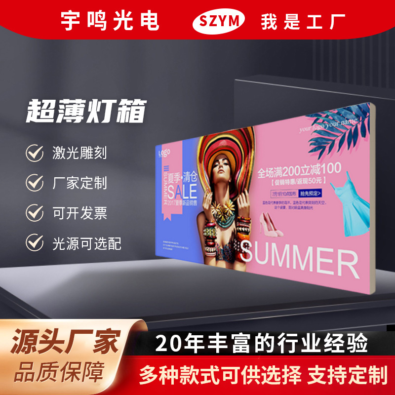 Kotak cahaya film lembut Khaki super tipis tampilan pintu kios papan reklame terpasang di dinding bercahaya karakter uv papan iklan produsen