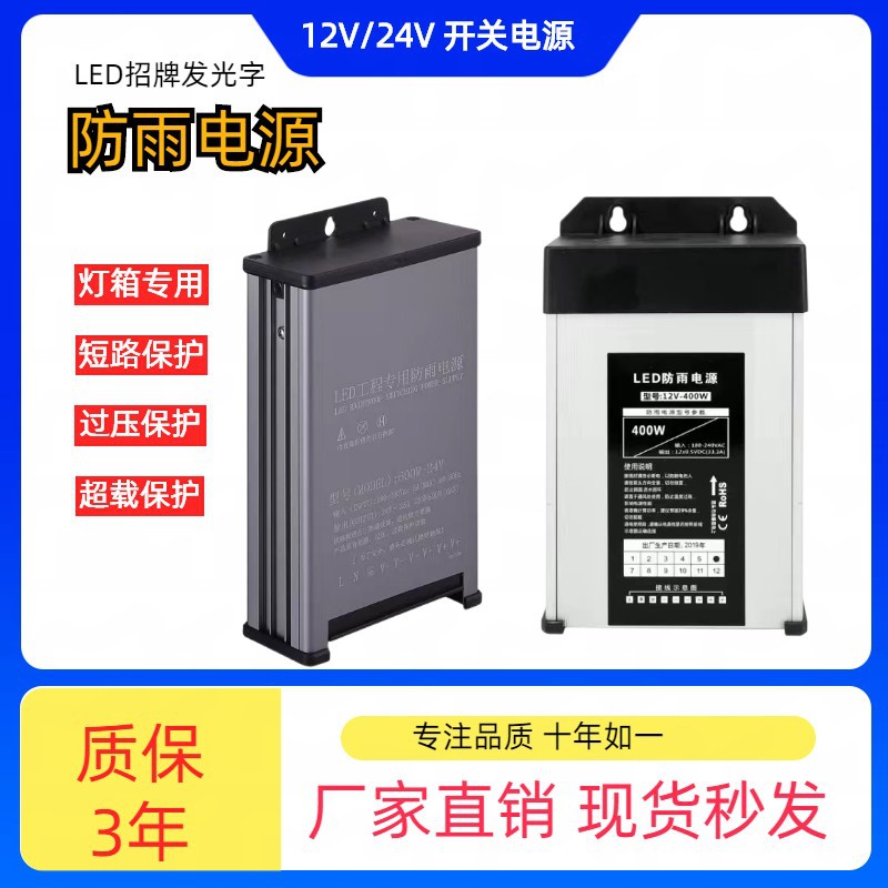 Catu daya tahan hujan khusus untuk karakter LED bercahaya 12V33A, papan iklan light box 12V400W tahan air berdaya tinggi