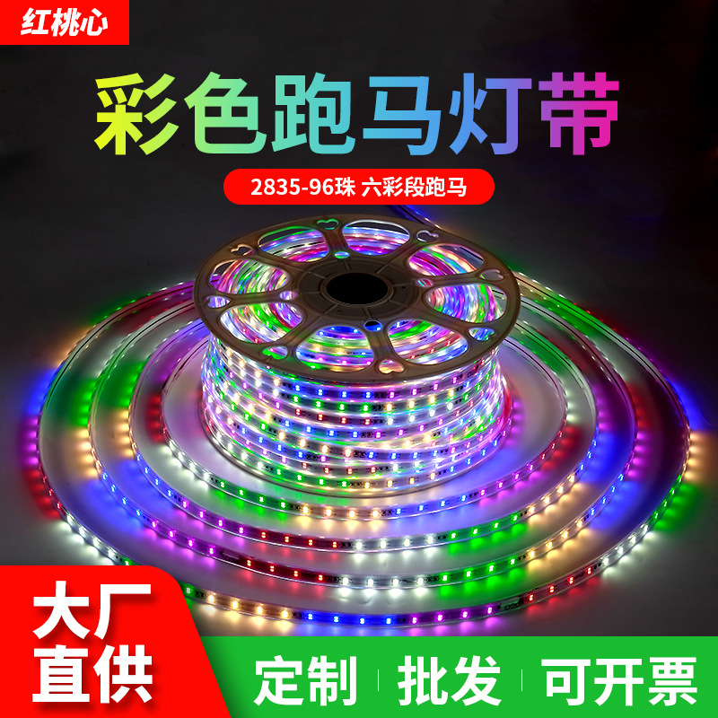 Lampu berjalan warna-warni RGB, dengan dekorasi luar ruangan suasana tahan air enam warna lampu lari kuda dengan papan nama pintu led