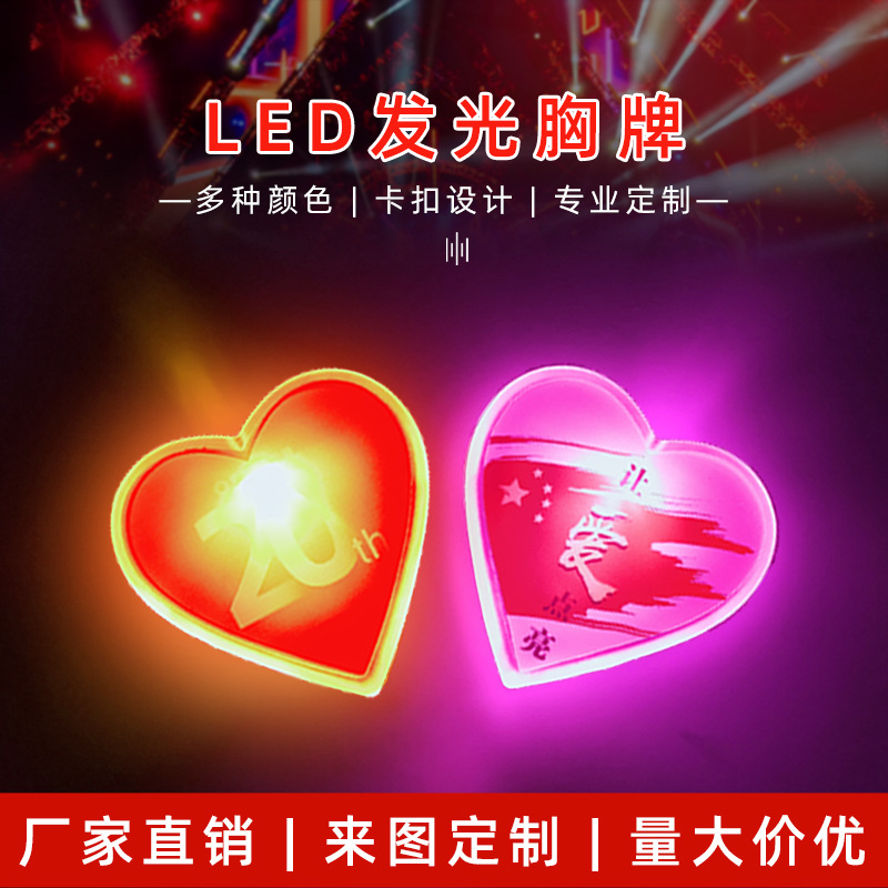 Lencana akrilik bercahaya LED cinta flash lencana konser pameran bercahaya bros menyala dalam gelap lencana grosir