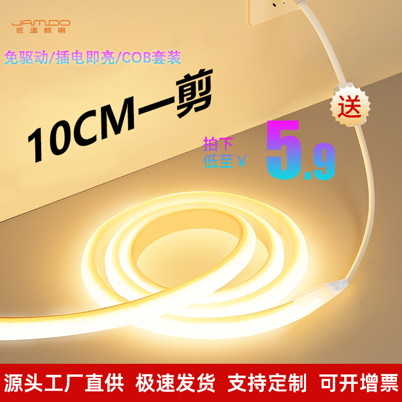 Lampu setrip COB voltase tinggi 220V/110V, lampu LED rumah tangga fleksibel bilah lampu iklan luar ruangan grosir