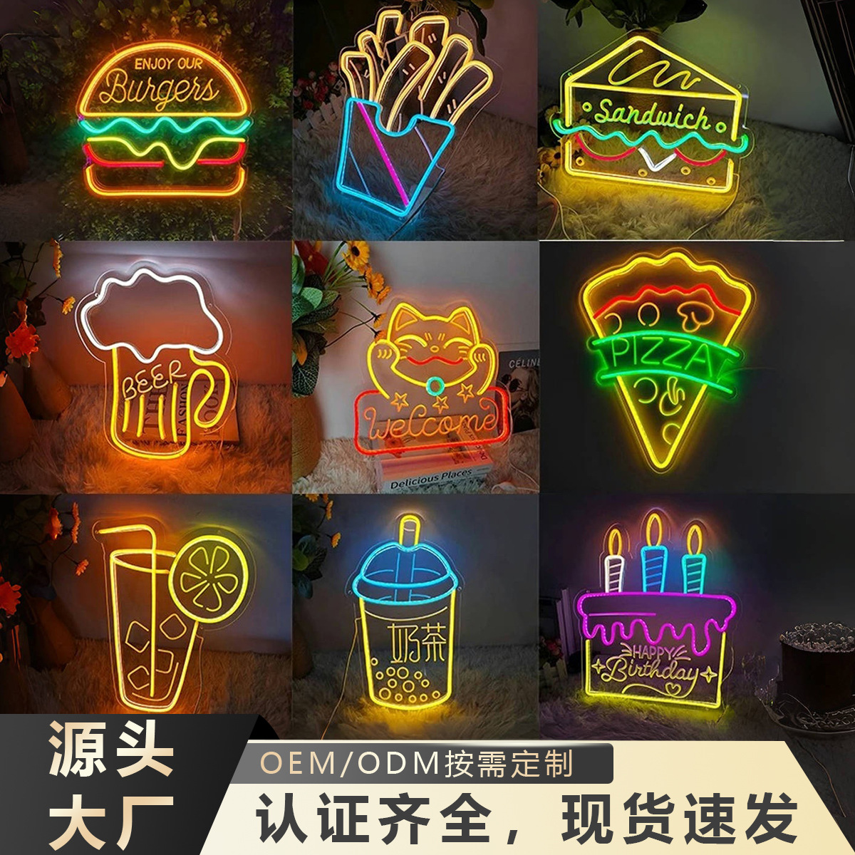Hot Dog Lampu Neon Lampu Kentang Neon Lampu LED Teh Susu Pasar Malam Kios Alat Pelesiran Burger Bercahaya Papan Reklame
