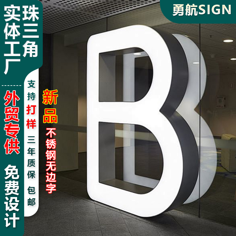 Cross-border akrilik LED khusus tanpa bingkai kata bercahaya papan reklame pintu luar ruangan papan reklame baja tahan karat kata tanpa bingkai