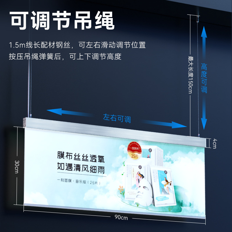 Papan Reklame Kotak Lampu Super Tipis Dua Sisi Papan Reklame LED Lampu Lampu Papan Tampilan Tipe Gantung untuk Pemasangan Langit-Langit Toko