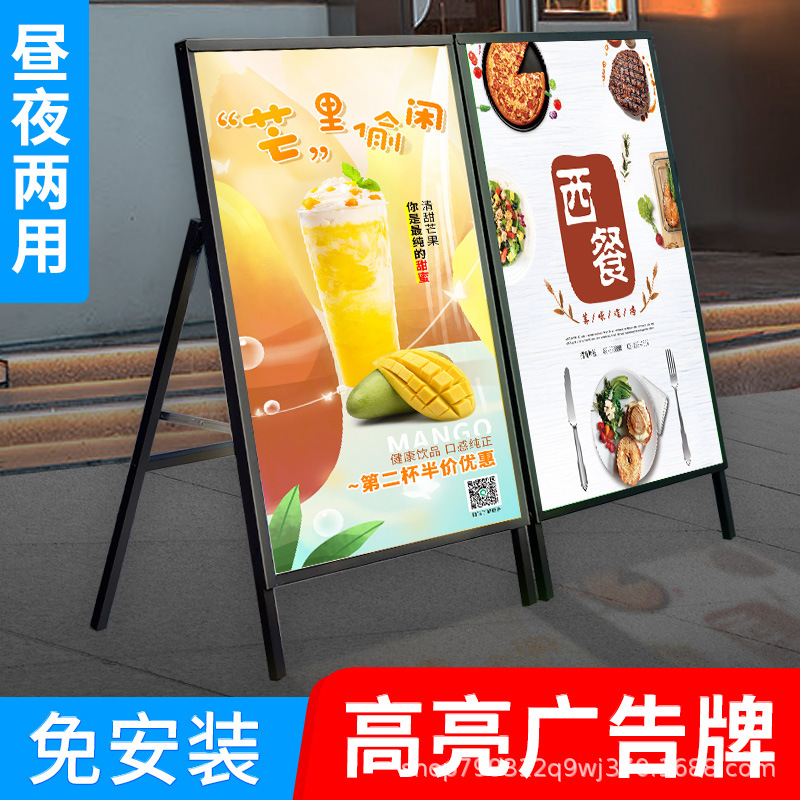 Papan reklame berbentuk A dengan lampu LED, berdiri di lantai, untuk menampilkan poster, papan promosi hemat energi LED.