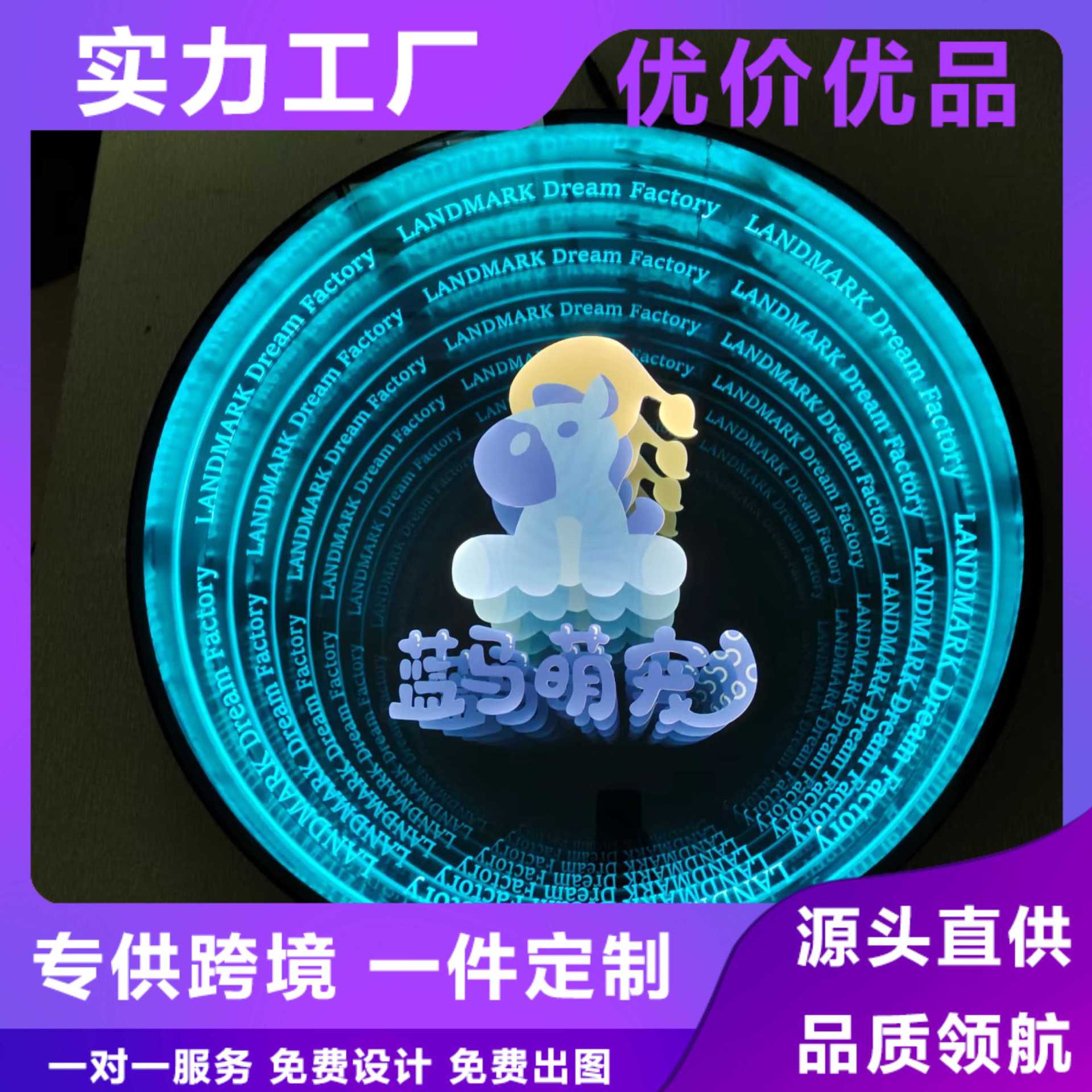 Cermin Melaleuca Kepala Pintu Baja Tahan Karat LED Unlimited Abyss Lampu Neon Luar Ruangan Papan Reklame Kata Bercahaya Tiga Dimensi
