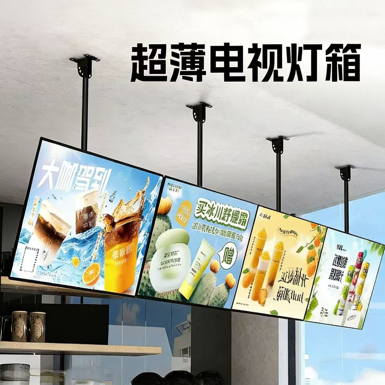 Kotak Lampu TV Super Tipis Toko Teh Susu LED Lampu Lampu LED Menu Pesan Menu Papan Reklame Magnetik Gantung Papan Nama Dinding