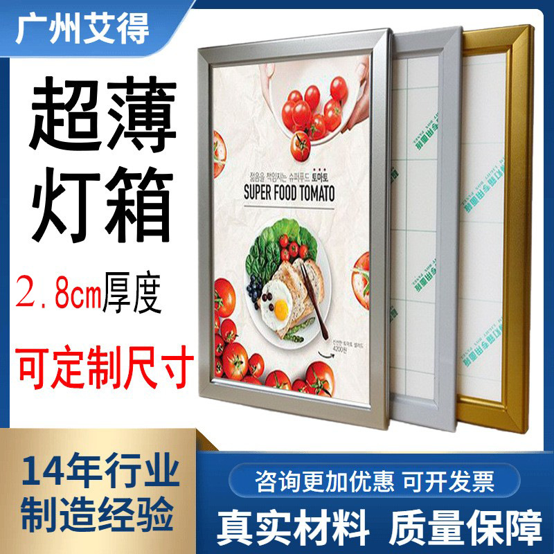 Kotak lampu LED ultra tipis, papan iklan dinding empat sisi terbuka, dapat disesuaikan dalam bentuk khusus, kotak lampu ultra tipis untuk kustomisasi kedai minuman teh susu