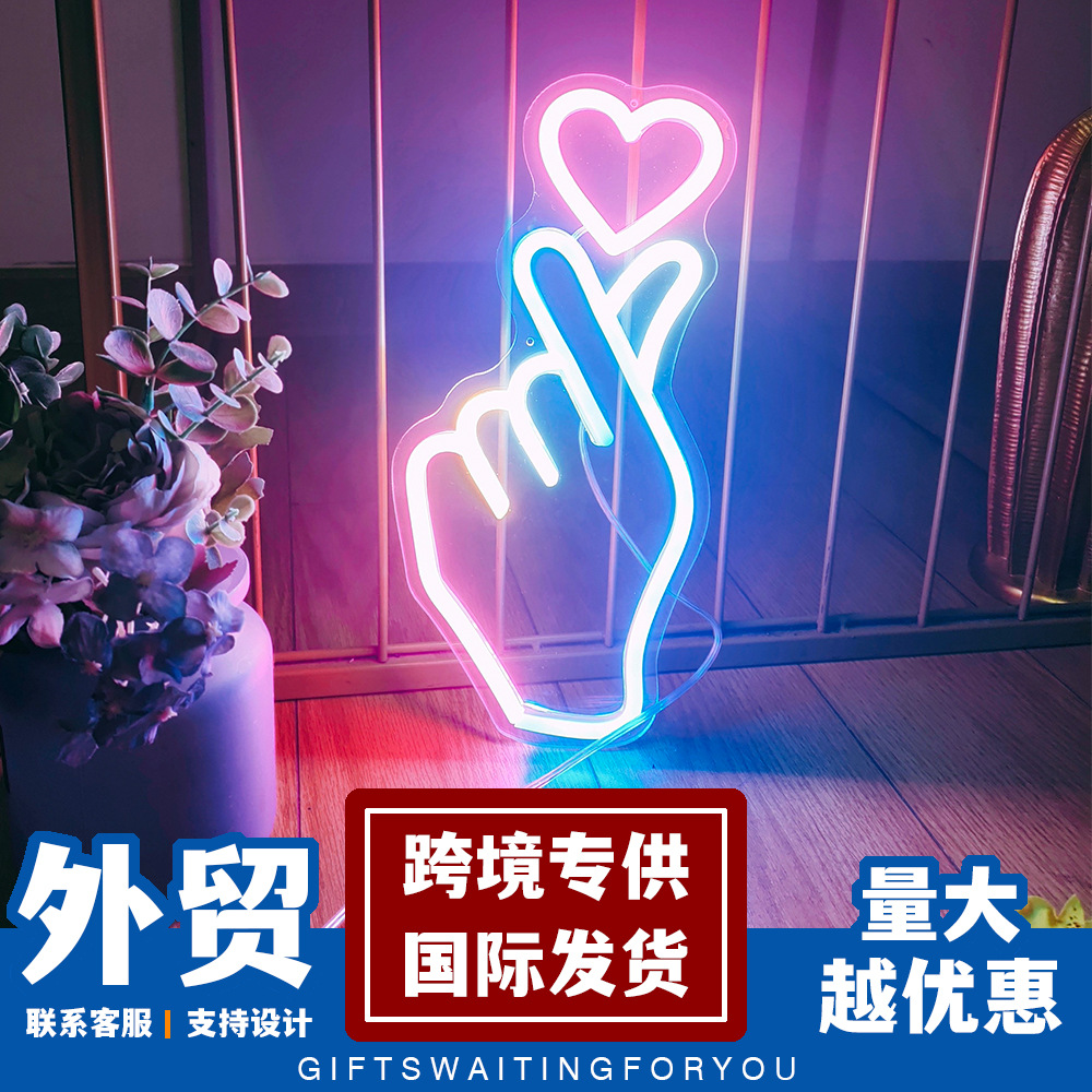 DIY lampu neon bentuk hati jari belanja mall bar lampu dekoratif perdagangan luar negeri Amazon eksklusif