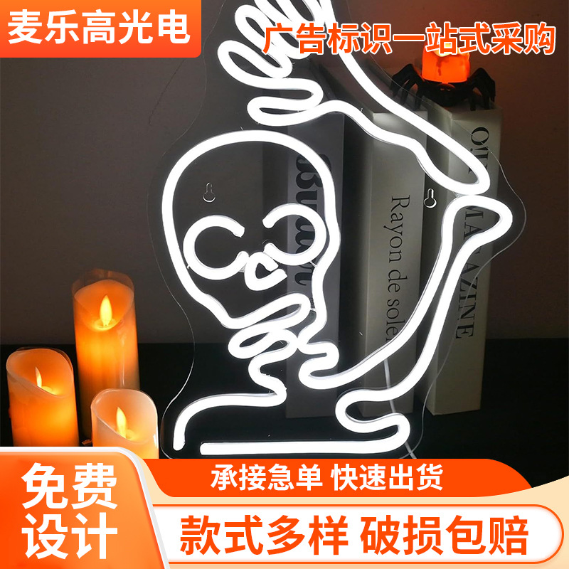 Lampu Neon Transparan Lampu Bentuk Belakang Dekorasi Halloween Hadiah Liburan Pesta Lampu Hias Dinding Kamar Tidur