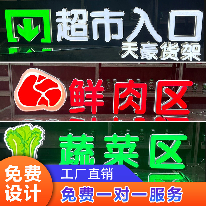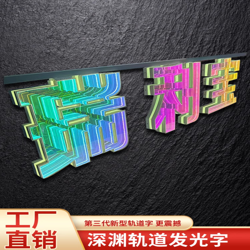 Huruf timbul bercahaya dari resin akrilik untuk papan nama gantung di mal, supermarket, dan pintu iklan; papan nama huruf timbul bentuk khusus yang bercahaya.