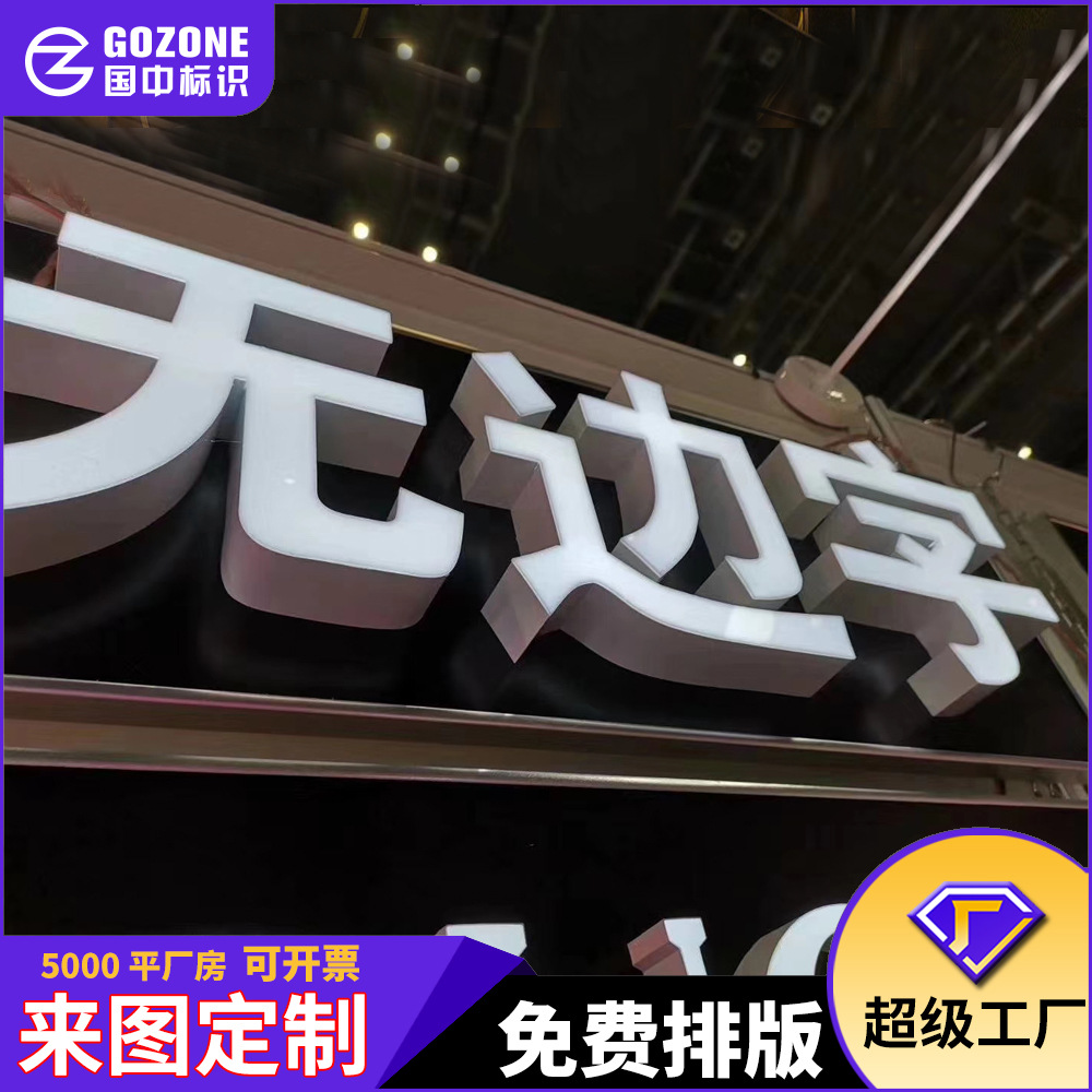 Iklan papan nama bercahaya kata pabrik pasokan langsung baja nirkarat iklan bar akrilik semua tubuh tanpa bingkai kata bercahaya