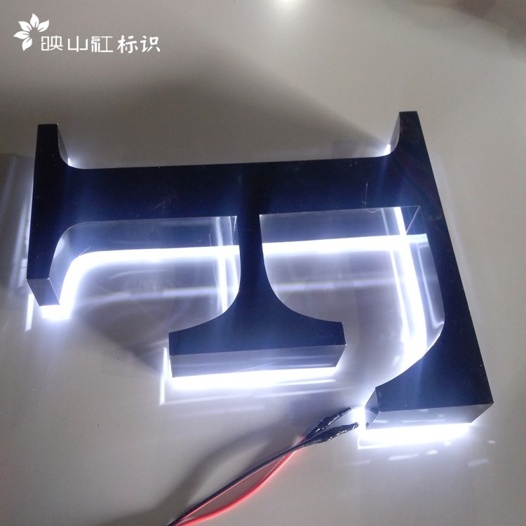 Papan nama baja tahan karat, huruf resin dengan lampu latar, papan nama, huruf mini logam tiga dimensi.