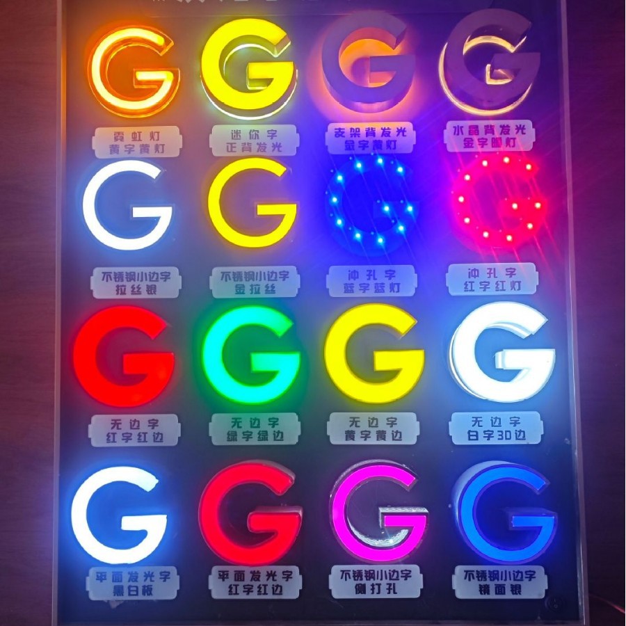 Kotak lampu akrilik jaring baja tahan karat merah papan iklan kreatif pintu luar kepala seluruh tubuh logo gantungan dinding kata bercahaya