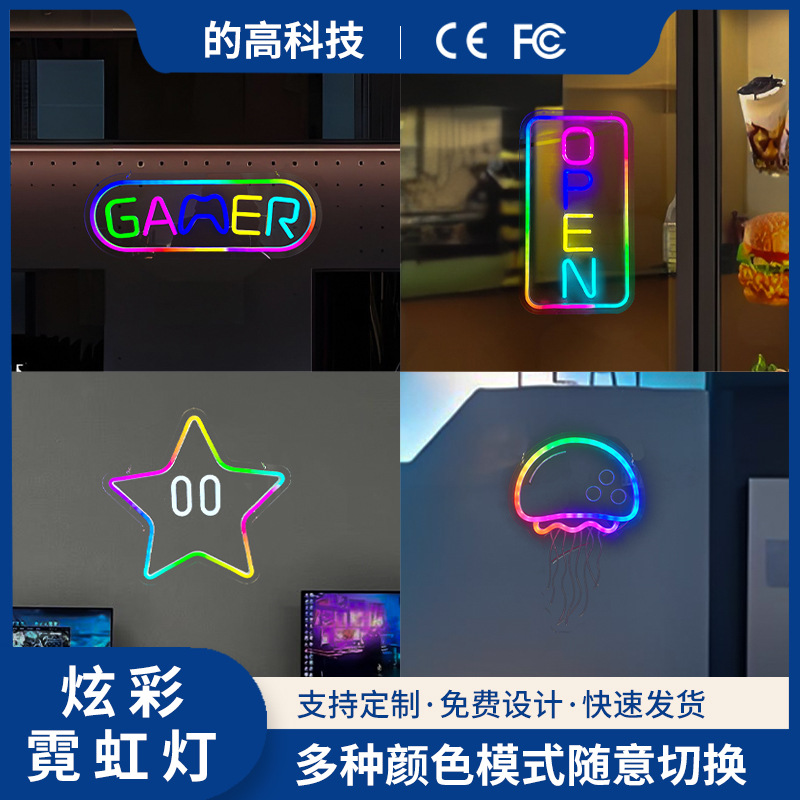 Lampu Neon, papan reklame karakter bercahaya, papan reklame Internet, latar belakang dinding, lampu led, papan reklame bar, suasana