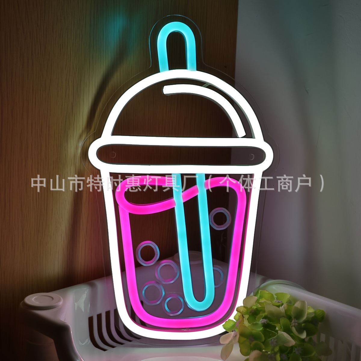 Lampu Model papan neon led, lampu model tanda neon bercahaya, lampu toko minuman susu teh, tanda neon transparan