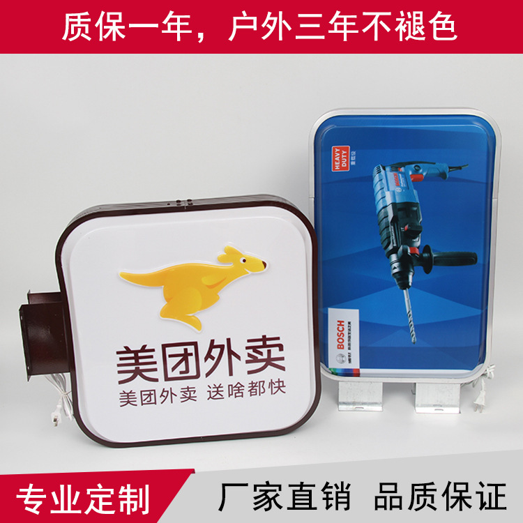 Kotak lampu LED dua sisi, papan iklan luar ruangan yang dipasang di dinding, kotak lampu iklan yang dipasang di dinding, papan nama samping toko