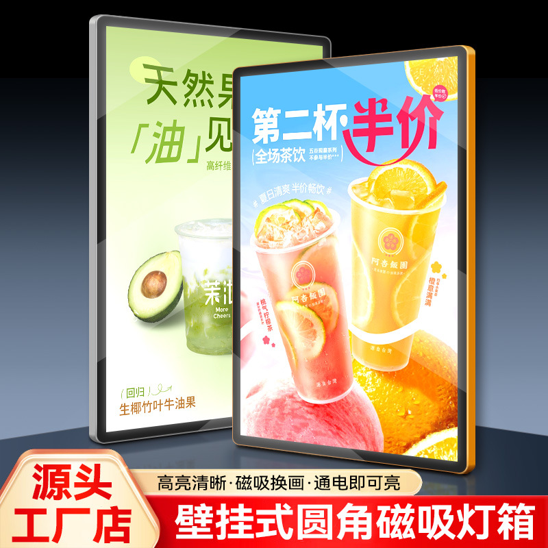 Kotak lampu magnetik ultra tipis dengan sudut membulat, papan menu LED yang dipasang di dinding, daftar harga, papan reklame bercahaya, penjualan langsung pabrik, pemasangan di dinding magnetik
