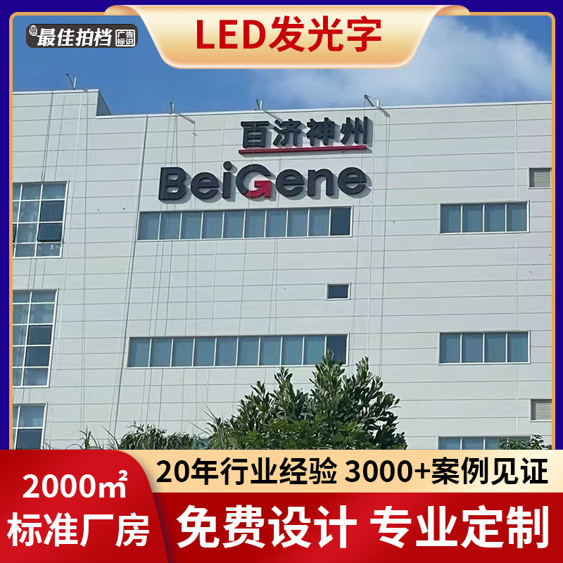 Desain Perusahaan logo papan iklan dinding atap besar tanda pabrik bangunan LED karakter bercahaya