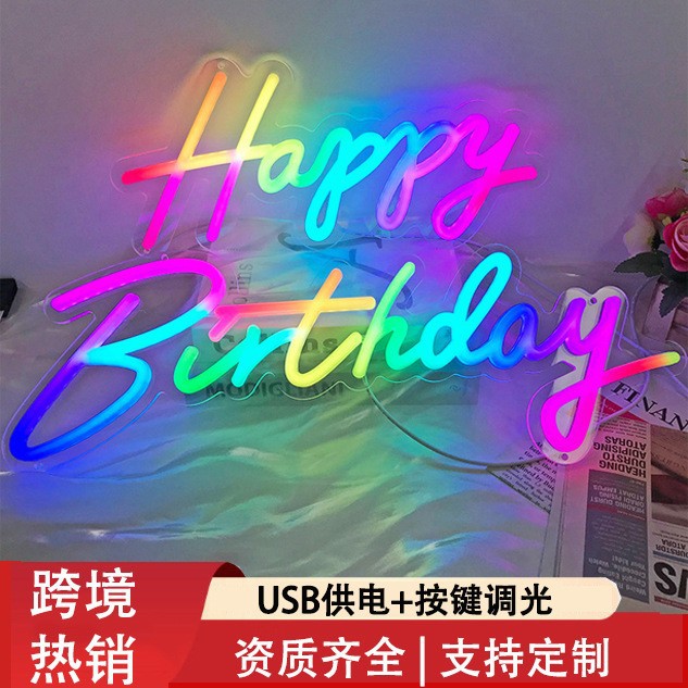 RGB Baru Selamat Ulang Tahun Neon Bersinar Kata Remote Kontrol Warna Warna-warni Happy Horse LED Neon Dekorasi Pesta