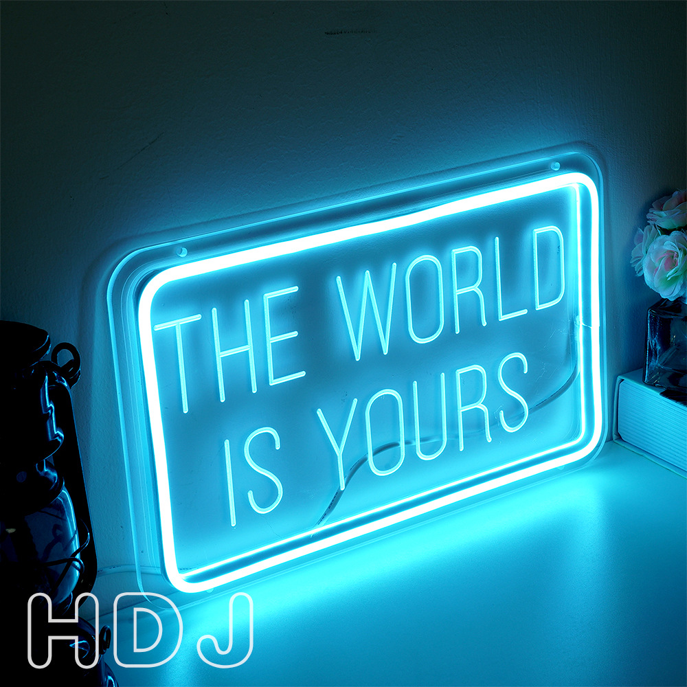Lampu neon huruf bercahaya kata dunia adalah milik Anda diukir pelat cahaya bercahaya 5v lampu akrilik lintas batas