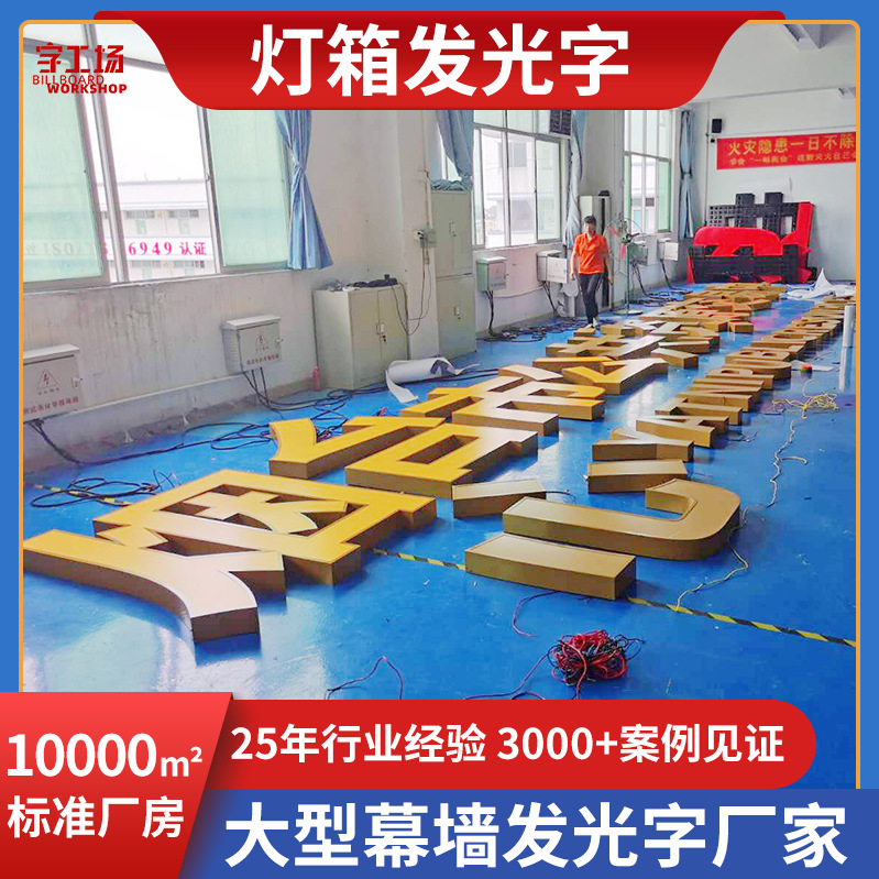 Kotak papan nama aluminium baja tahan karat karakter bercahaya besar luar ruangan kotak cahaya tertutup tepi cat papan nama karakter iklan atap Perusahaan