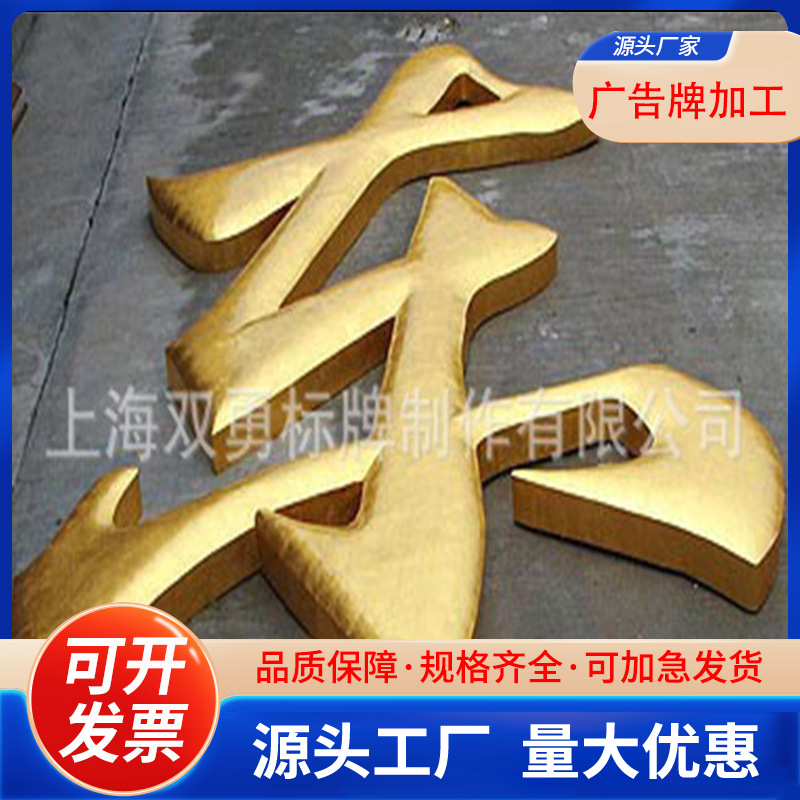 Karakter bercahaya belakang perunggu kuning dengan papan latar baja tahan karat produksi tanda tangan pabrik Pameran desain ruang produksi dinding latar belakang