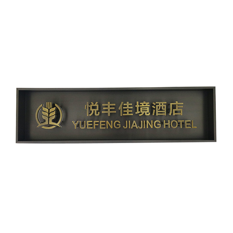 Papan reklame logam karakter bercahaya baja tahan karat shopping mall hotel perusahaan papan nama desain teks plus pola papan nama