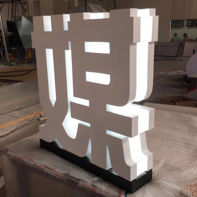 Identifikasi karakter dinding gambar karakter resin menutupi tepi baja tahan karat karakter bercahaya belakang karakter akrilik bercahaya