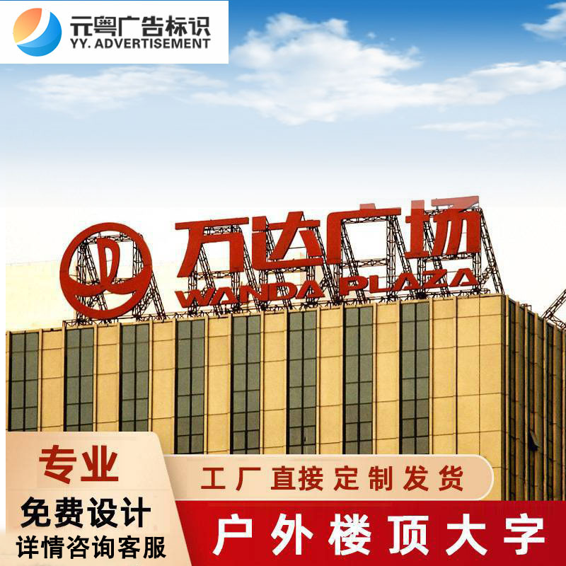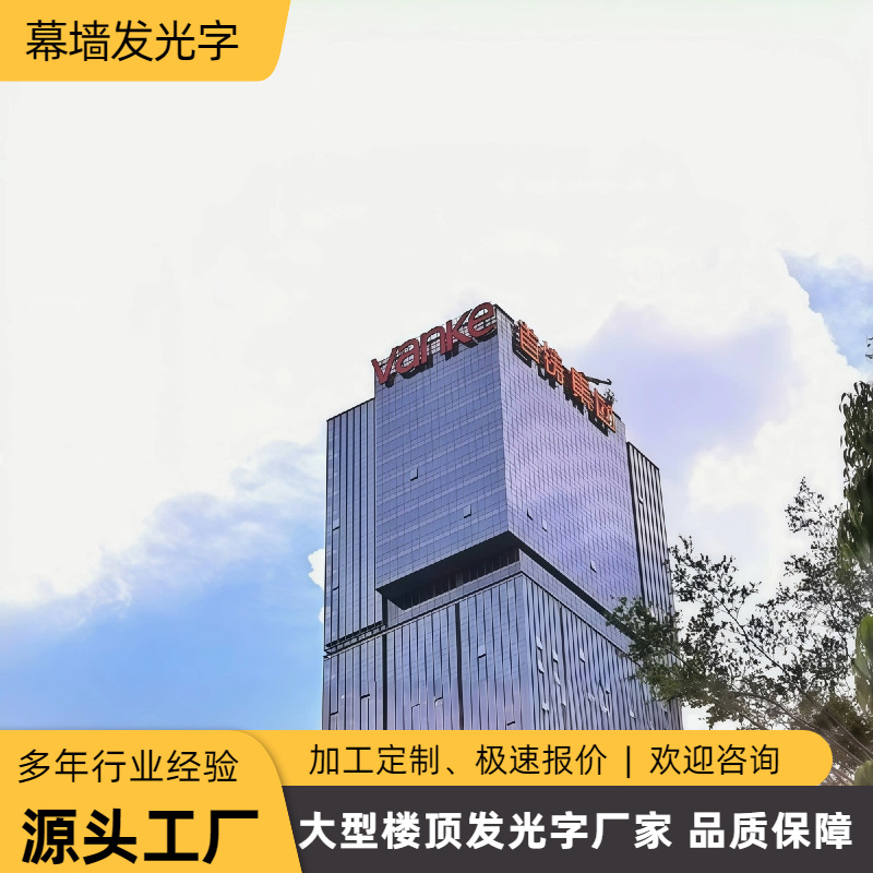 Tirai kaca luar ruangan, karakter atap bercahaya, bangunan besar, logo papan reklame besar, stainless steel, karakter bercahaya