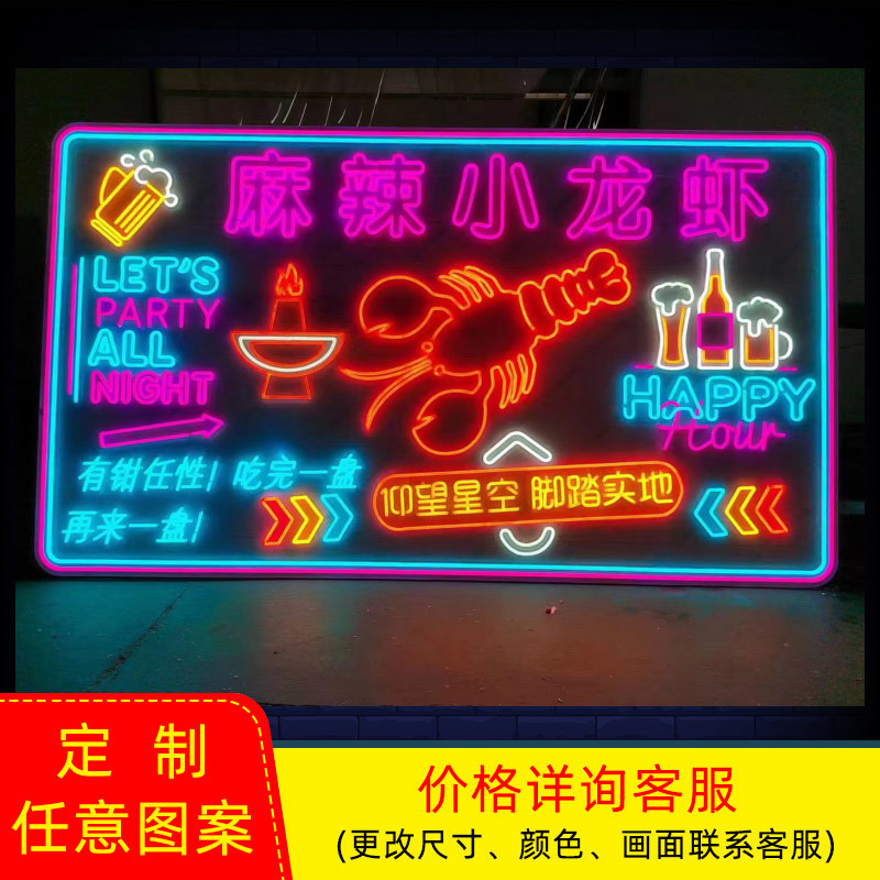 Lampu neon led piring lampu hias crayfish bercahaya kata pasar malam toko barbekyu lampu pemodelan led suasana cahaya grosir