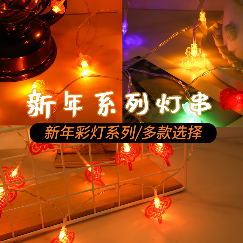 Lampu LED lentera merah tali Tahun Baru liontin meriah lampu warna dekoratif Festival Musim Semi suasana Tahun Baru lampu tali simpul Cina karakter Xi