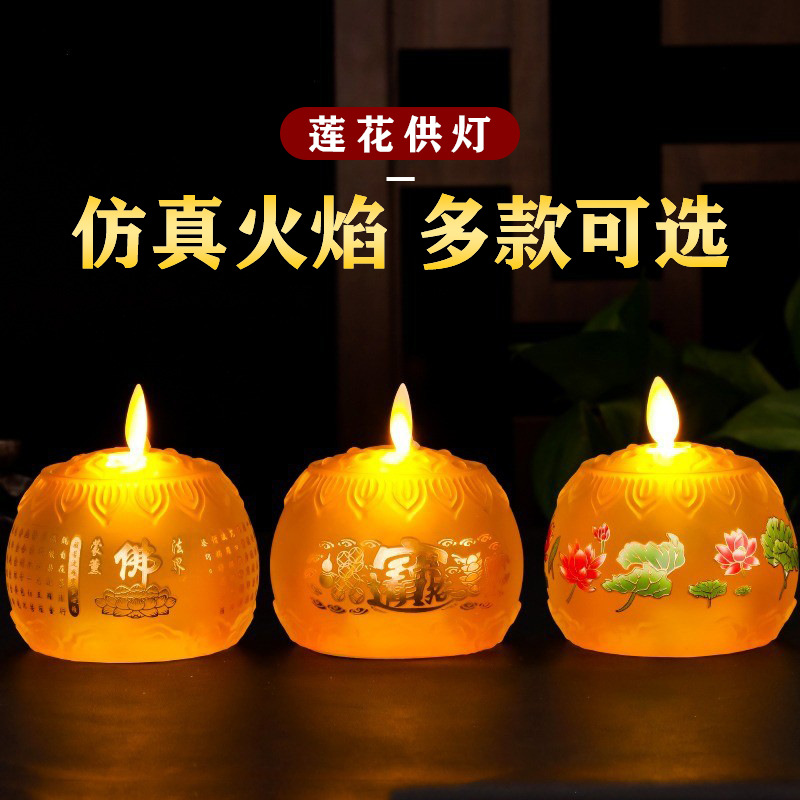Lampu lotus lilin elektronik led, lampu pemujaan Buddha rumah tangga, lampu panjang dewa kekayaan, lampu Buddha depan Buddha