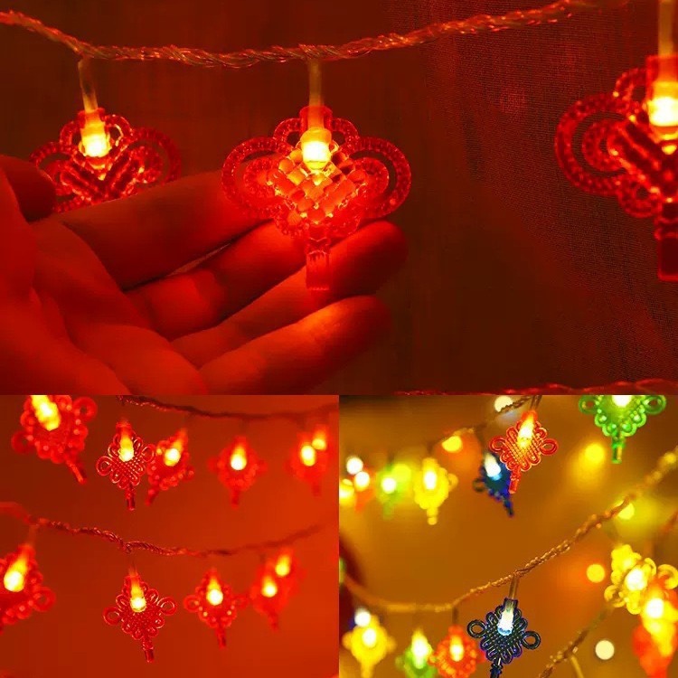 Lampu tali lentera LED lampu string dekorasi festival Musim Semi Tahun Baru lampu warna kecil meriah simpul Cina lampu gantung karakter fu bercahaya lampu berkedip