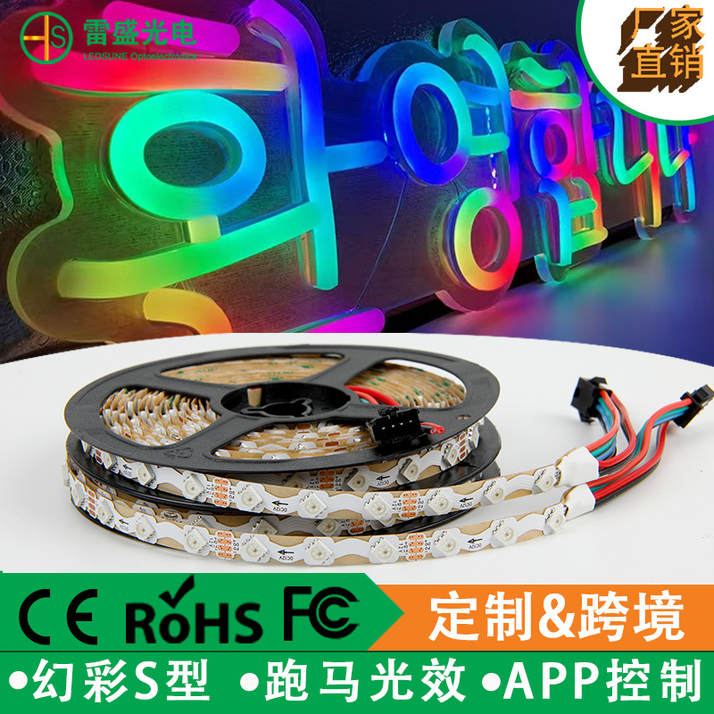 Iklan Luar Ruangan Tipe S Lampu Lembut dengan 12V WS2815 8mm Tanda Kata Neon Bercahaya Happy Horse Symphony LED Strip