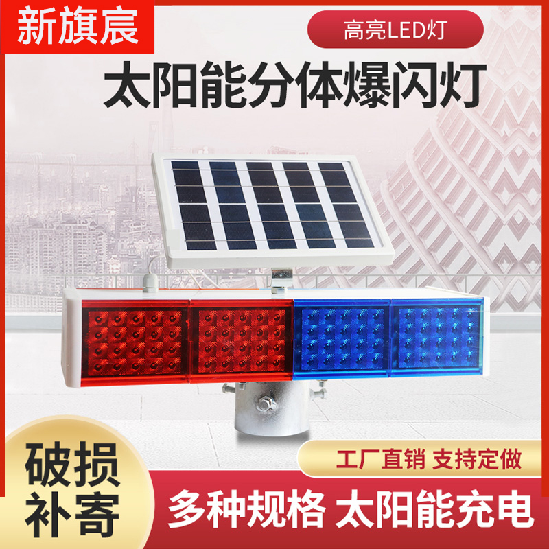 Lampu sorot split tenaga surya lampu konstruksi jalan lalu lintas LED lampu penghalang jalan berkedip lampu polisi merah dan biru dua sisi