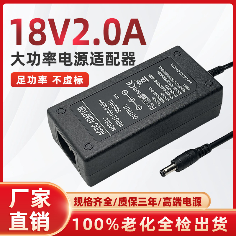 Adaptor daya 18V2A kamera pengawas, instrumen kecantikan kamera pengawas saklar lampu LED dengan adaptor daya tegangan stabil